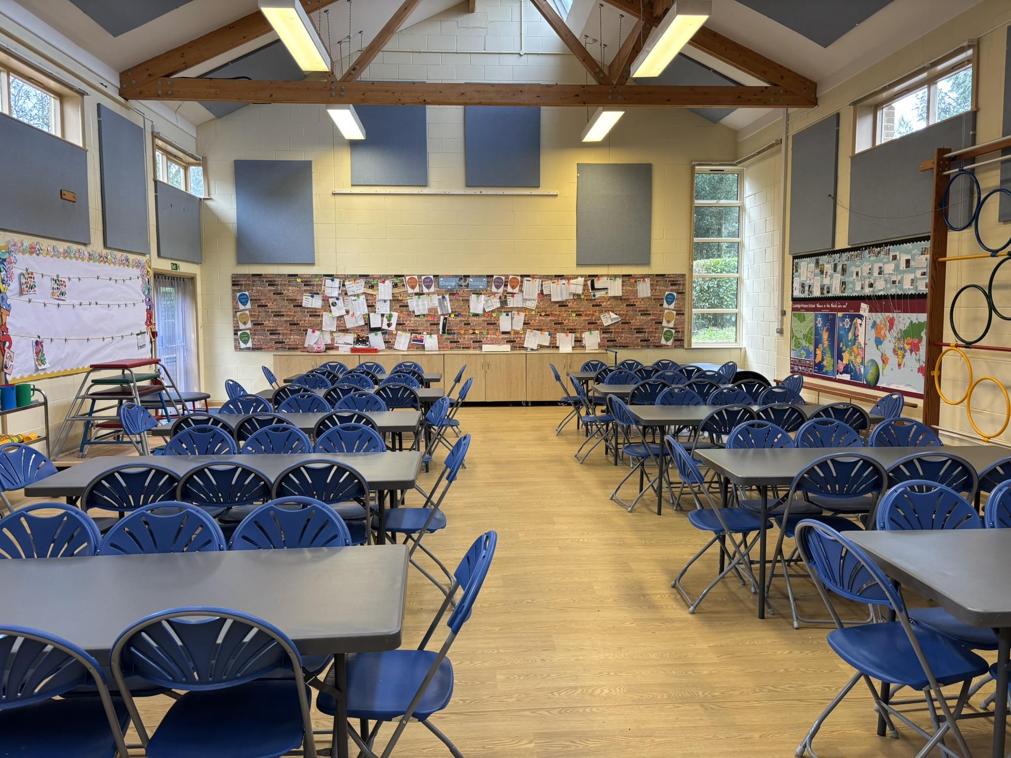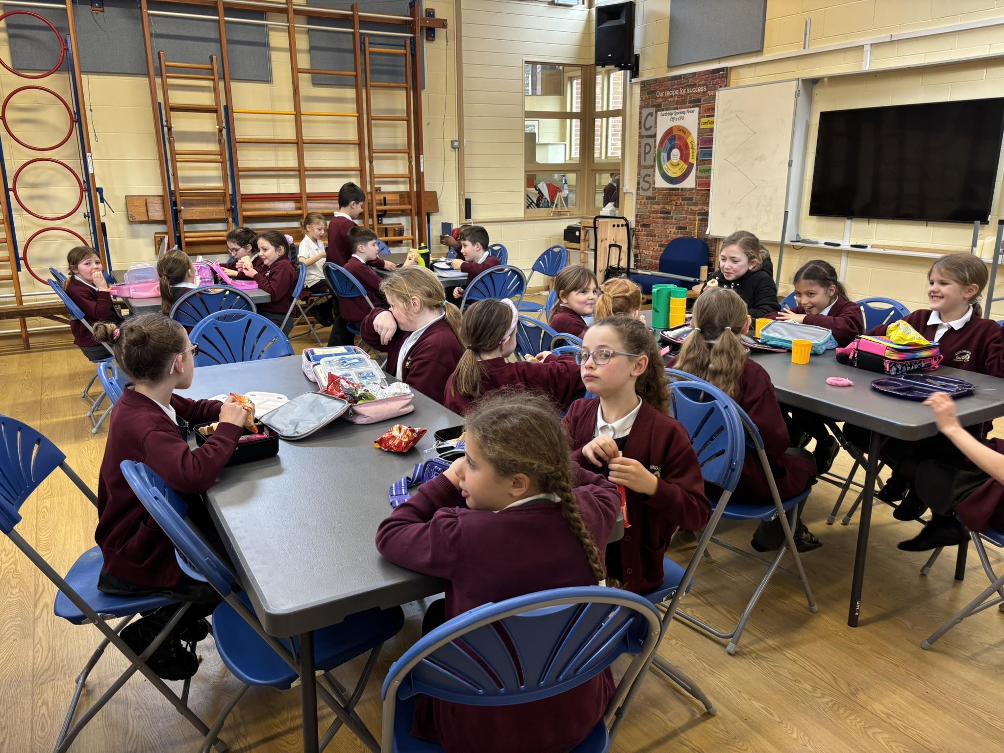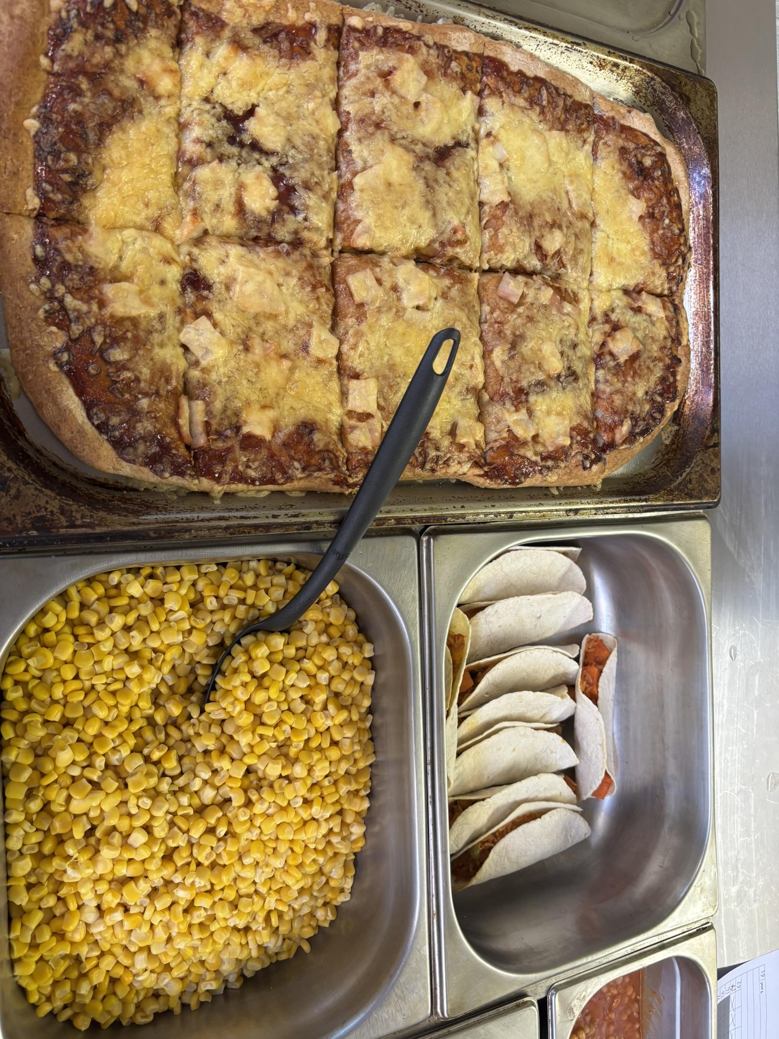 At lunchtime, options of a meat dinner or vegetarian dinner are available from the school. Meals cost £3.20 per day.